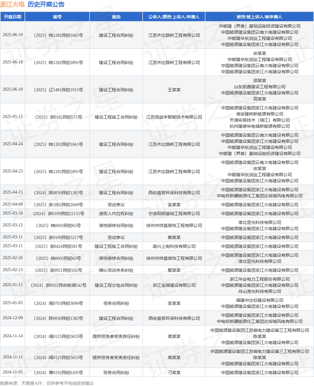 本站消息魔投网,根据天眼查APP显示,近日公布了一则中国能源建设集团浙江火电建设有限公司作为被告/被上诉人的开庭公告魔投网,详细内容如下: